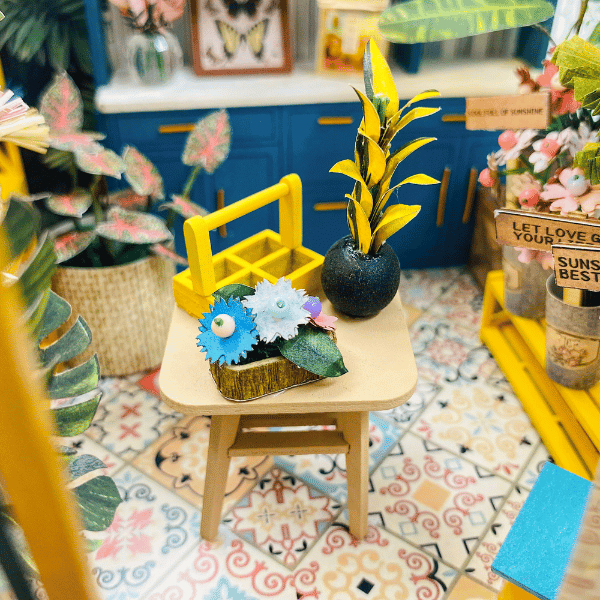 Bu minyatür sera, güneş ışığının camlardan süzülmesiyle iç mekânı aydınlatıyor. İçinde çeşit çeşit çiçekler, saksılar ve botanik detaylar bulunuyor. Bitki severler için yaratılmış bu özel serada, doğanın ferahlığını hissedecek ve kendi minyatür bahçenizi tasarlama keyfini yaşayacaksınız.