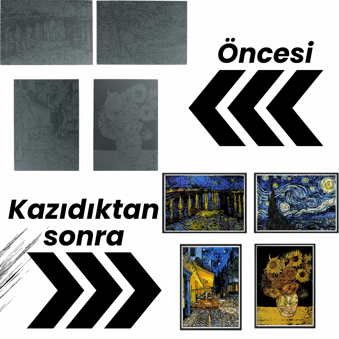 ✔️ 4 adet Van Gogh kazıma levhası (28×40 cm)