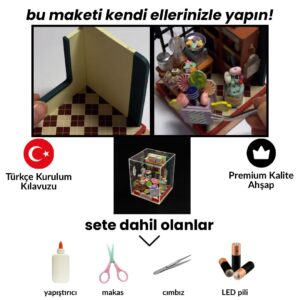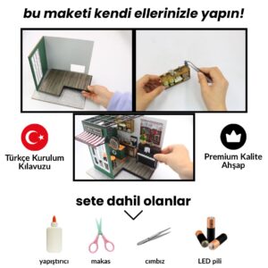 Bu Kendin Yap (DIY) seti, el becerilerinizi kullanarak kendi minyatür dünyanızı yaratmanızı sağlar. Set içerisinde, adım adım bir araya getirilecek tüm malzemeler ve detaylı bir kurulum kılavuzu yer alır. Her bir parçasını kendi ellerinizle monte ederek, sürecin her anında kişisel dokunuşunuzu projeye katabilirsiniz. Bu el yapımı minyatür ev, hem zihinsel rahatlama sağlayan bir hobi hem de yaşam alanınıza özel ve anlamlı bir dekoratif ürün olarak öne çıkar.